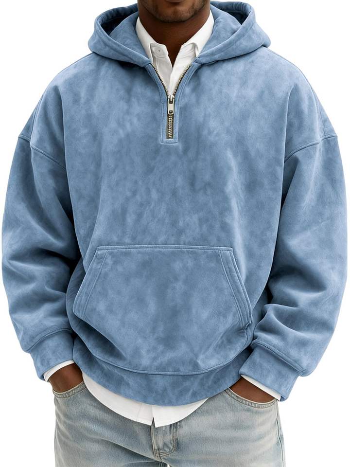 Nouveauté hiver Pull à capuche décontracté pour homme en coton uni délavé à l'acide avec fermeture éclair 1/4