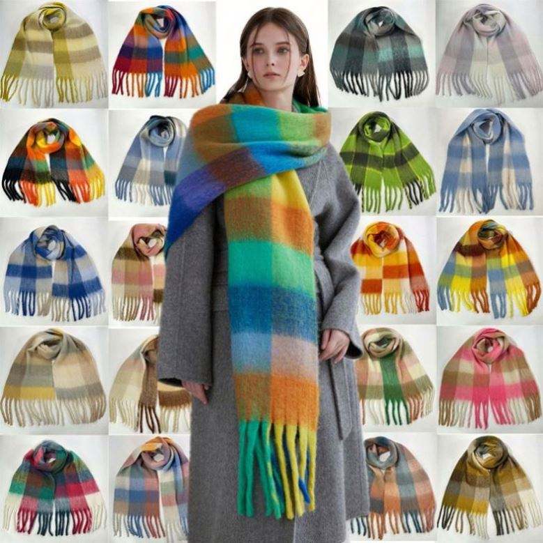 Nouvelle arrivée d'hiver, écharpe longue rayée colorée épaisse avec des franges, châles en cachemire de luxe pour femmes, 70*180cm, haute qualité