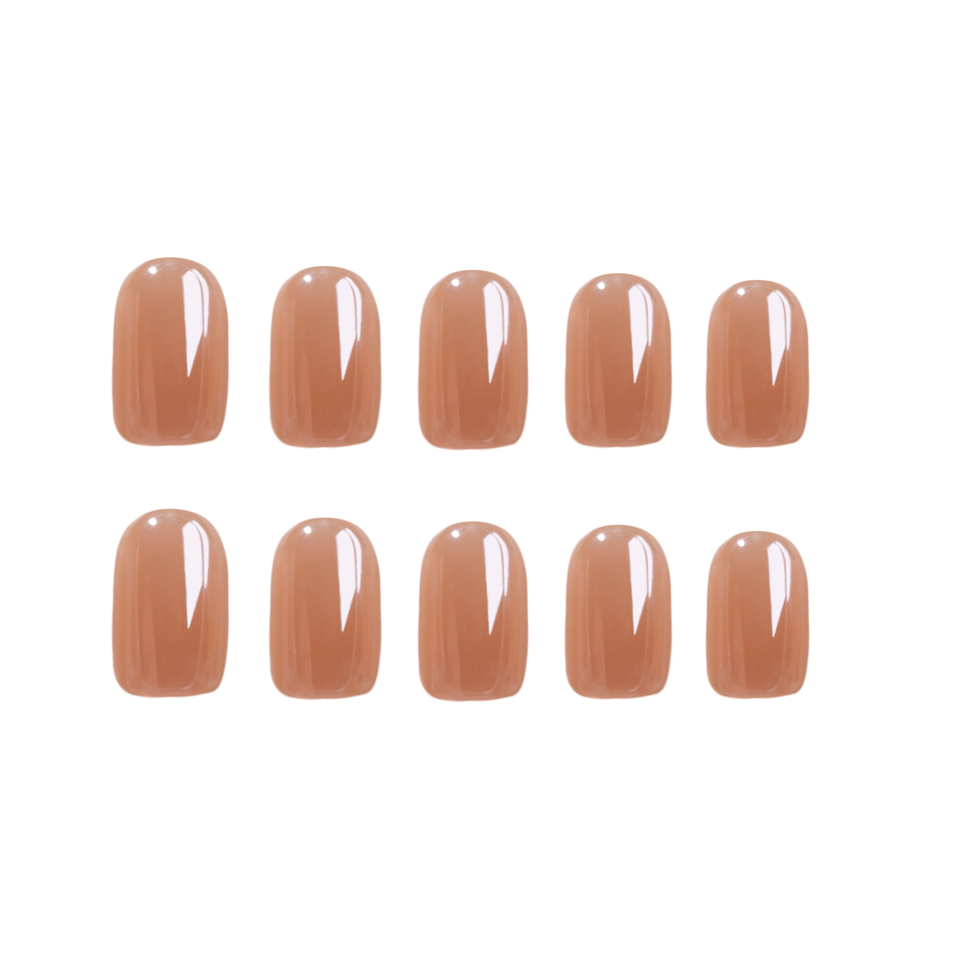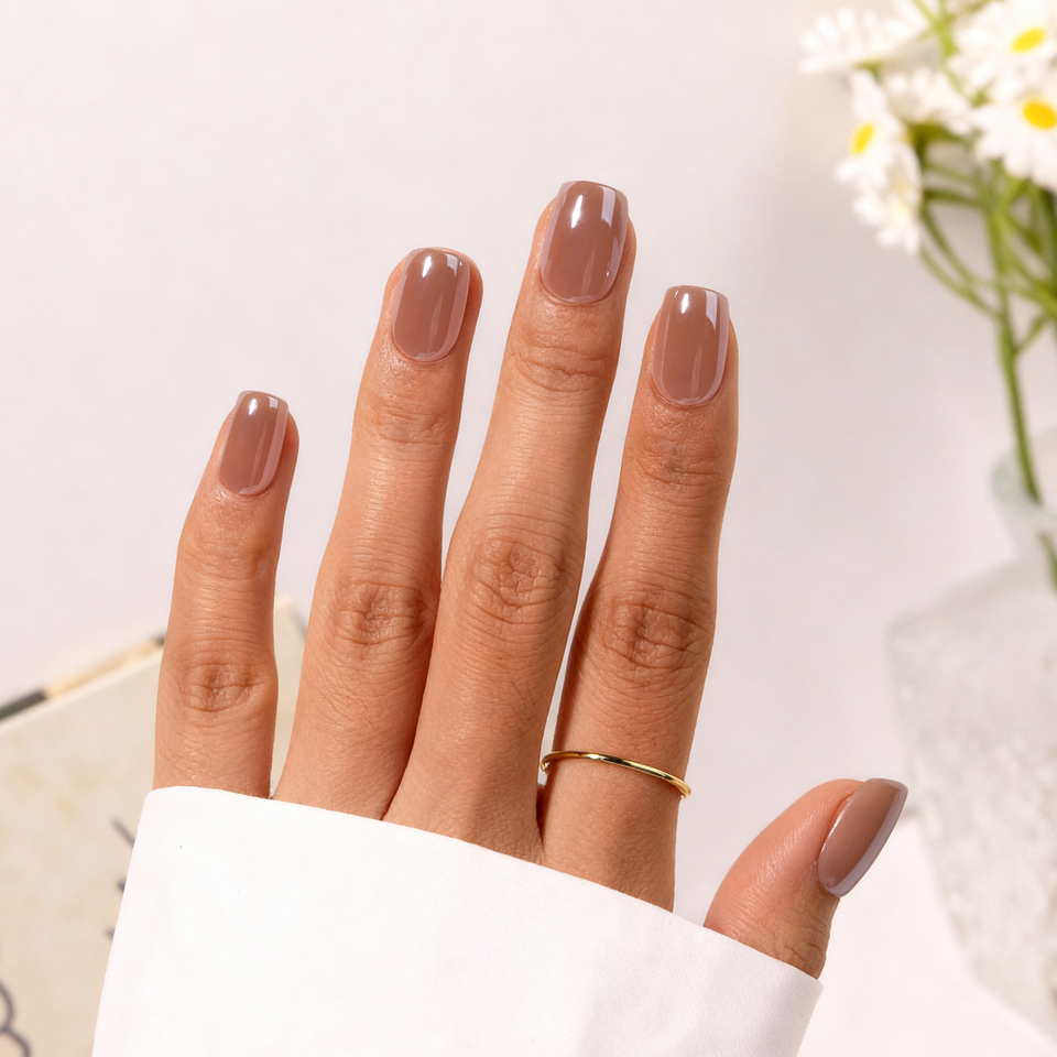 Nouveauté hiver, faux ongles courts carrés marron avec colle, acrylique, revêtement pastel, brillant, ongles à presser, vente en gros