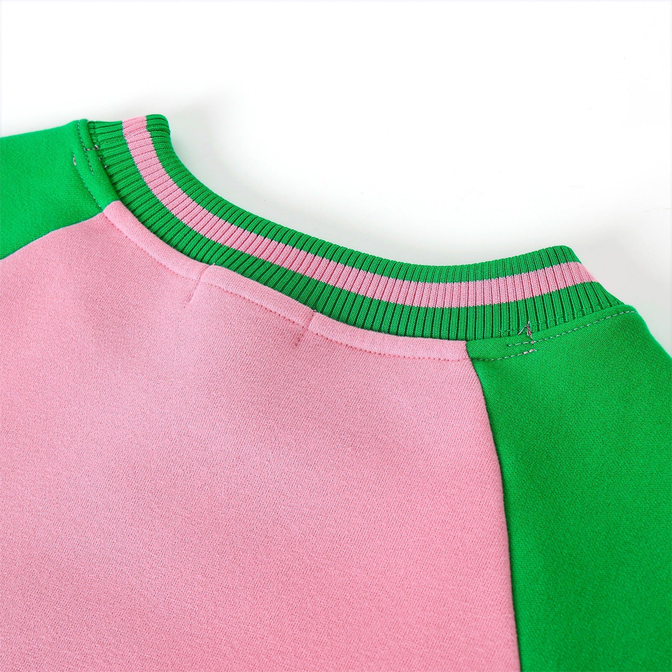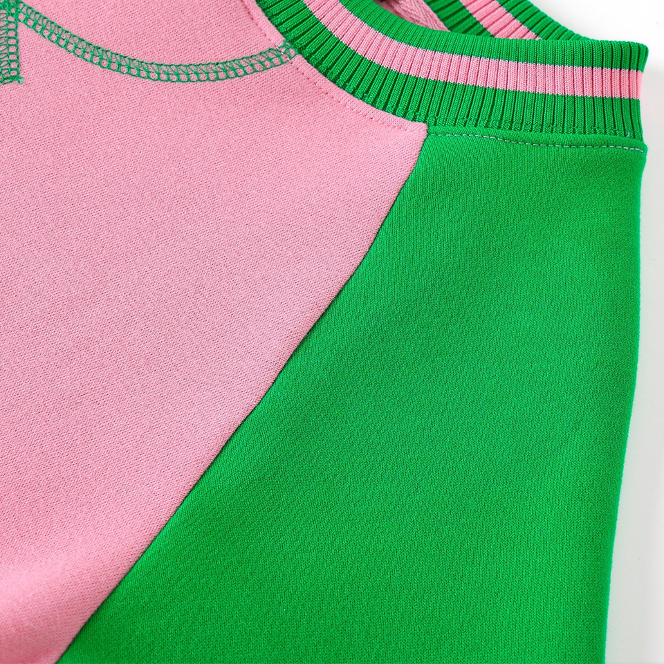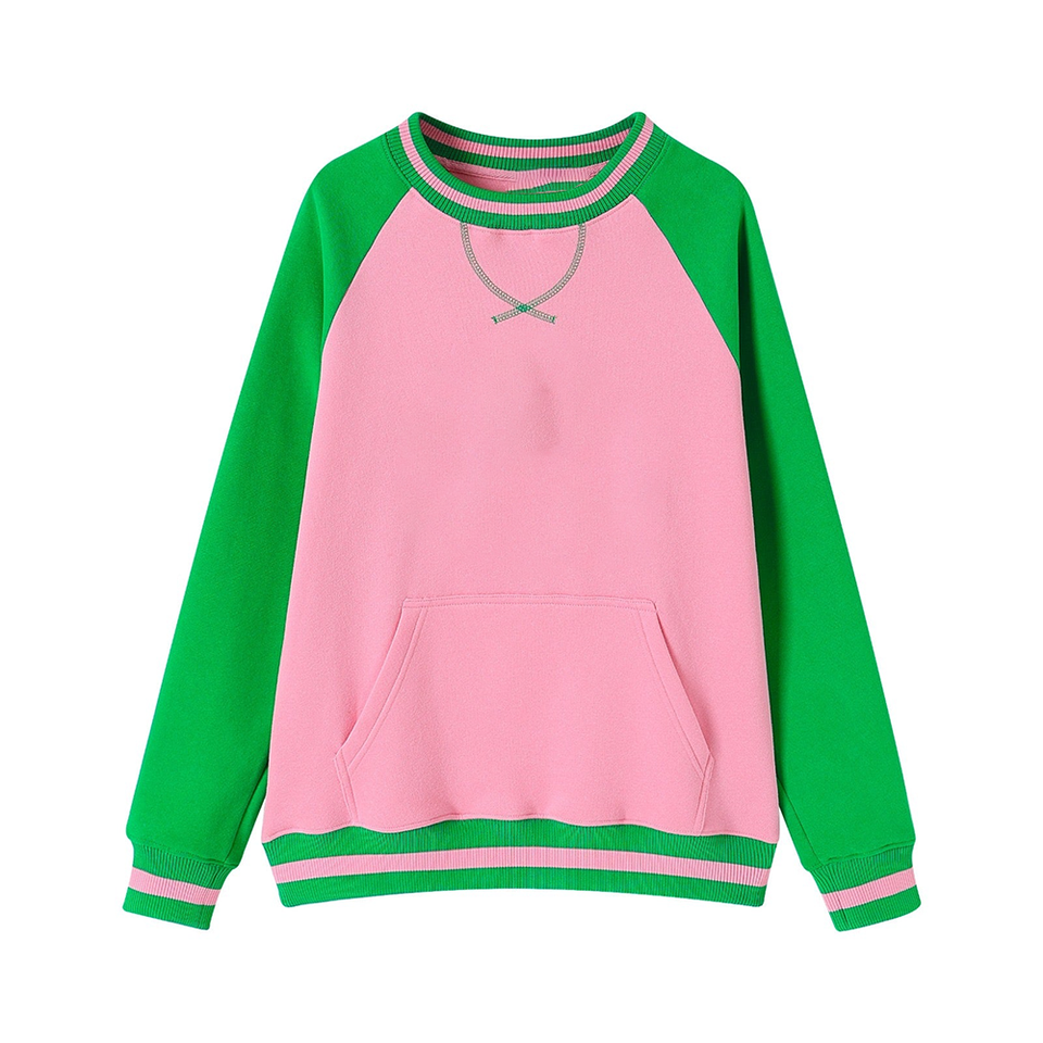 Sweat-shirt d'hiver surdimensionné Durable Bicolore Chenille Imprimé Color Block Kangaroo Pocket Green Rib Cuffs