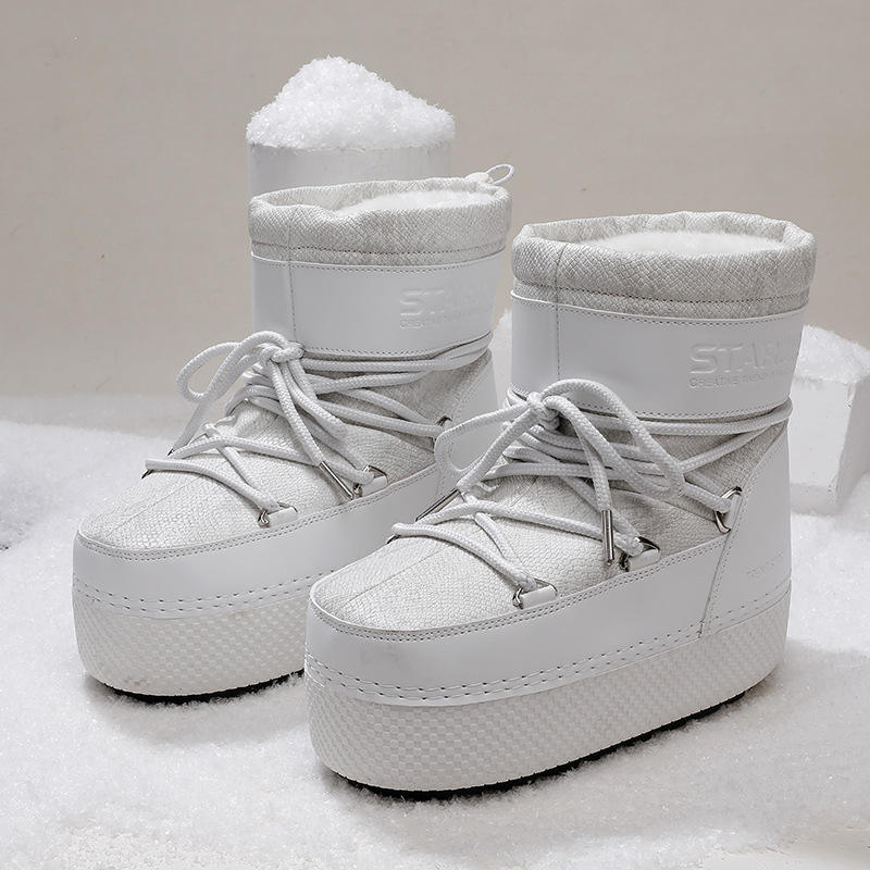 Bottes de ski d'hiver style parent-enfant, couleur sable thé, vente chaude transfrontalière, chaudes, antidérapantes, épaisses, mi-mollet, bottes de neige artificielles