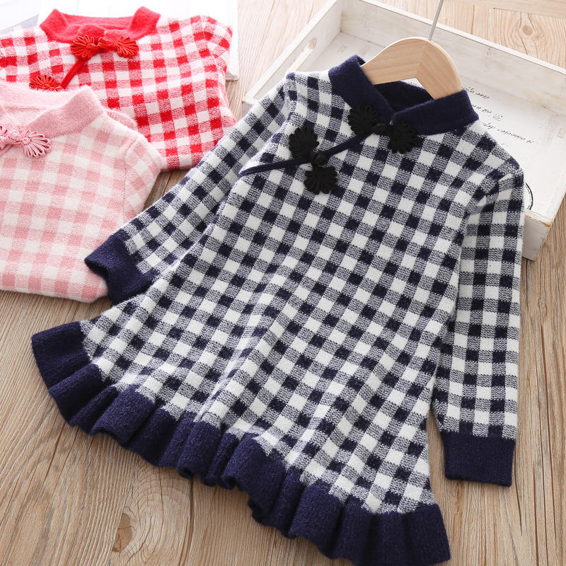 Cartoon:checked knitting baby girl sweater