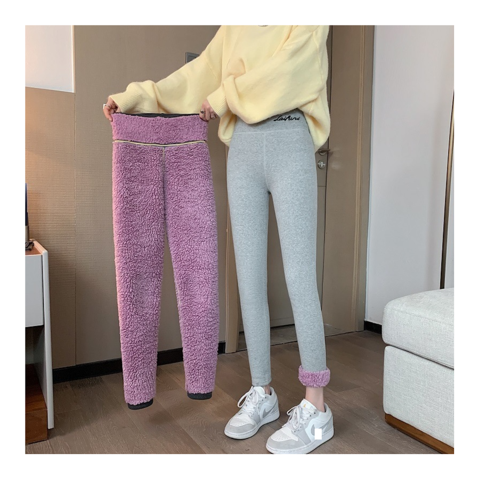 Collant Chaud Femme Polaire Épais Grande Taille Hiver, Taille Haute Uni avec Lettrage Latéral