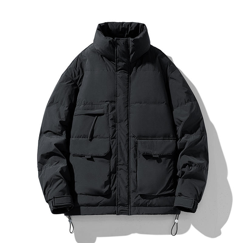 Veste d'hiver matelassée, design slim, capuche amovible, poche avec logo, XL, imperméable, épaisse, style bulle, plumes