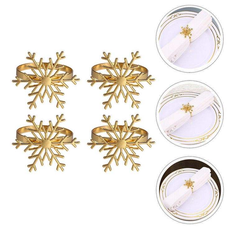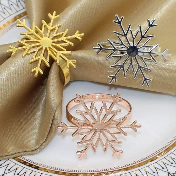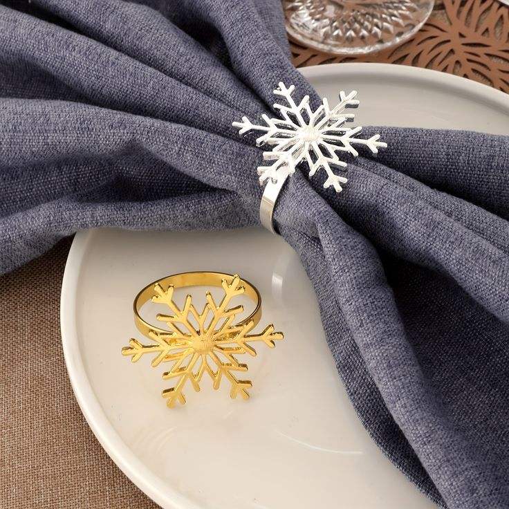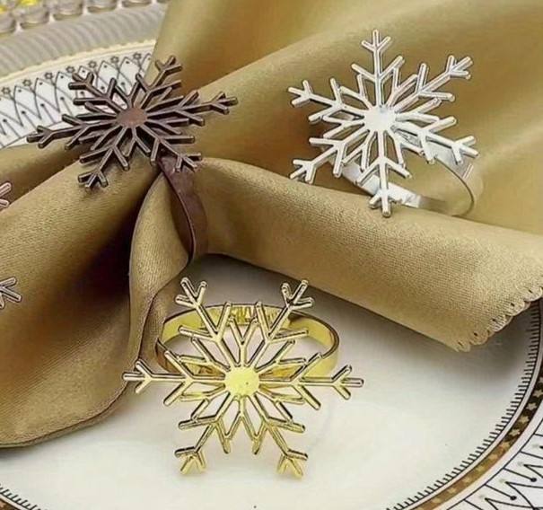 Winter Snowflake Metal Napkin Rings Christmas Table Setting Decor Elegant Classic Holiday Dinners Weddings Party Napkin Holder