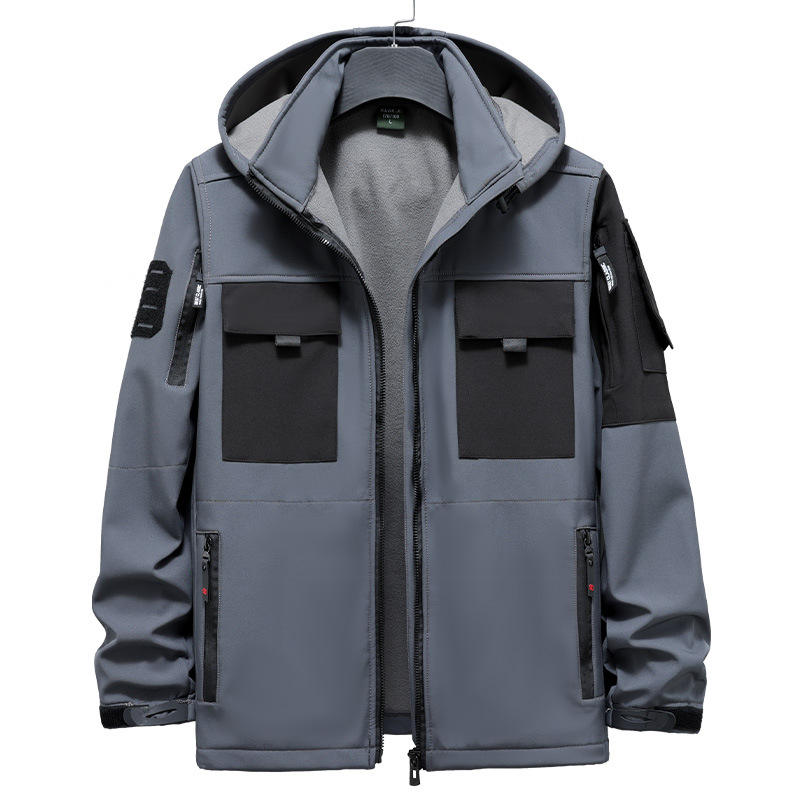 Winter Soft Shell Fleece Sets Men Outdoor Waterproof Multi-Pockets Hooded Jackets Cargo Pants Hiking Fishing Suits Male