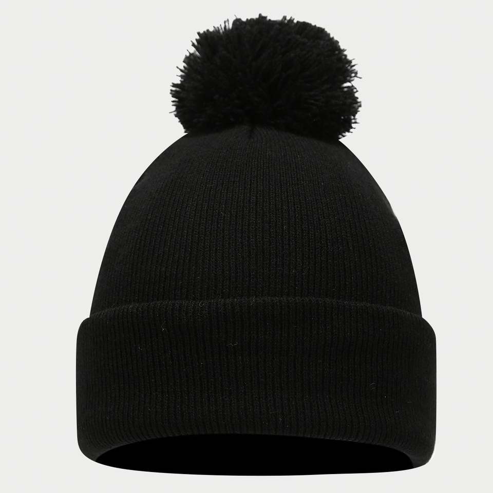 Hiver Couleur Solide Extérieur Boule de Fourrure Coupe-vent Chaud Bonnet Froid Bonnet Epais Tricoté Pompon Bonnets