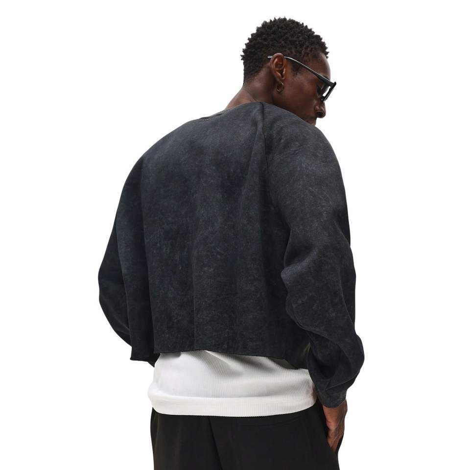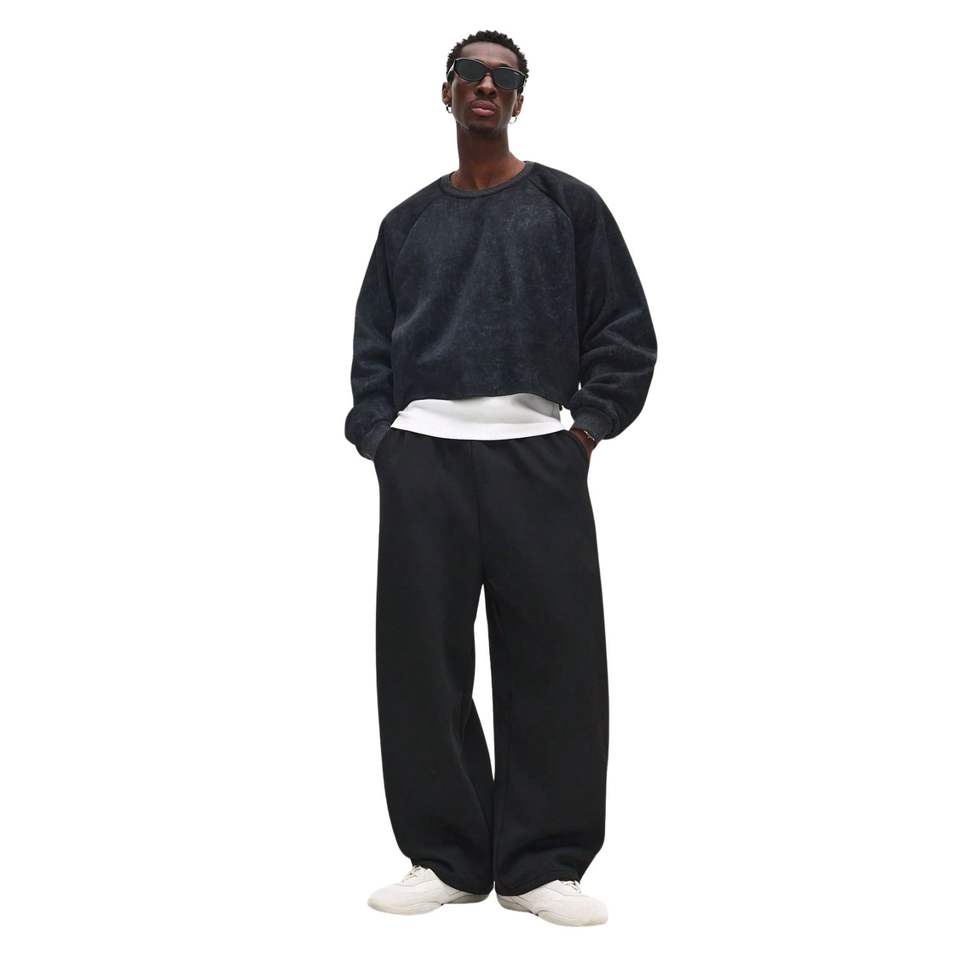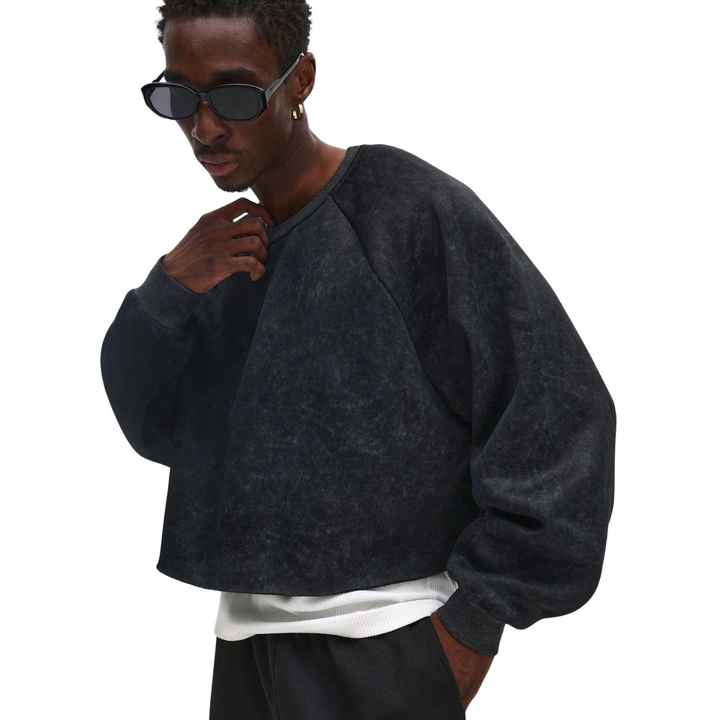 Sweat-shirt court pour homme, style vintage, poids lourd, col rond, manches raglan, lavé, surdimensionné, écologique, respirant