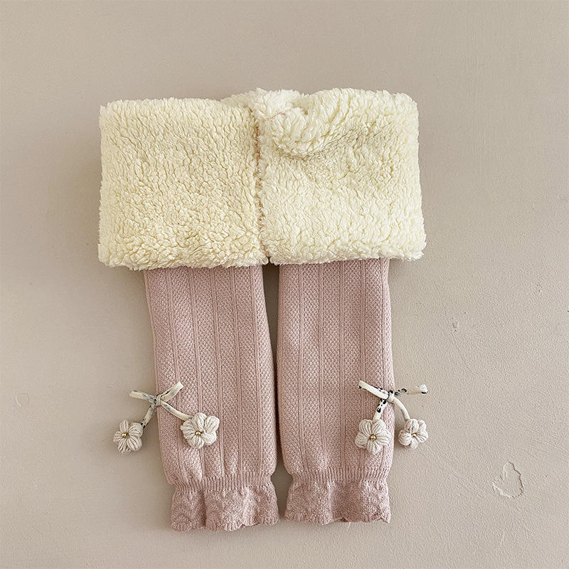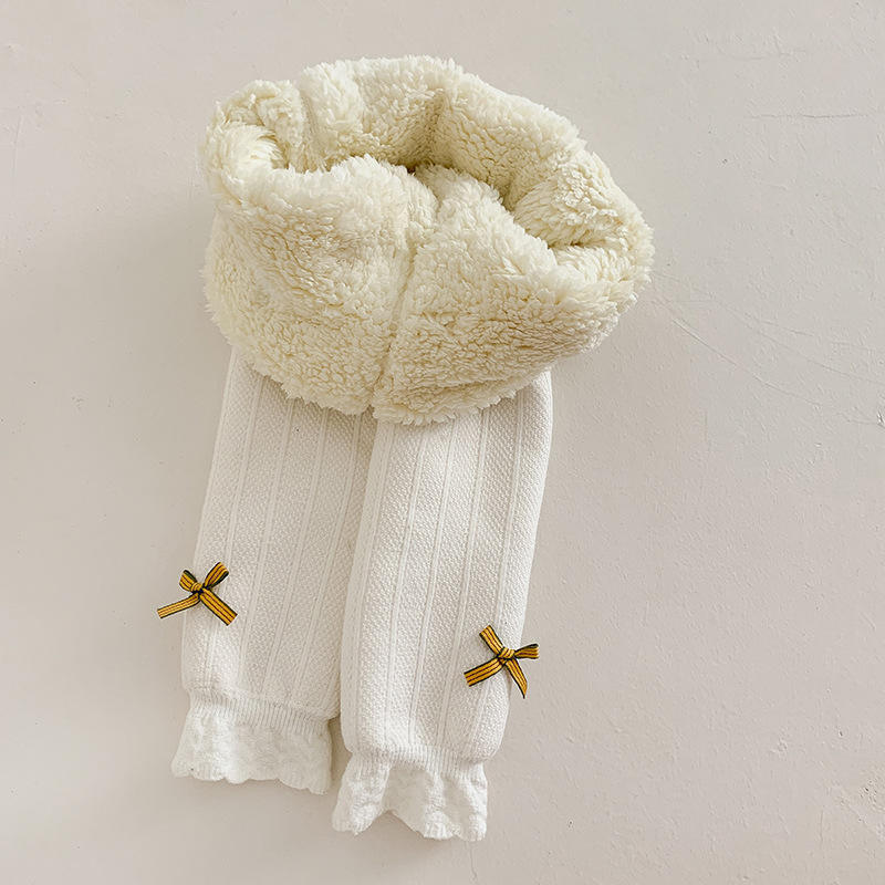 Pantalons d'hiver épais et chauds en cachemire pour bébés et enfants, leggings doublés en polaire de coton, leggings pour enfants à la mode avec nœuds mignons