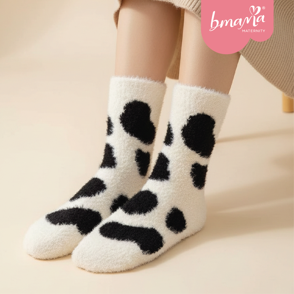 Chaussettes d'hiver épaisses et douillettes pour femme, motif vache, idéales pour la maison et le lit