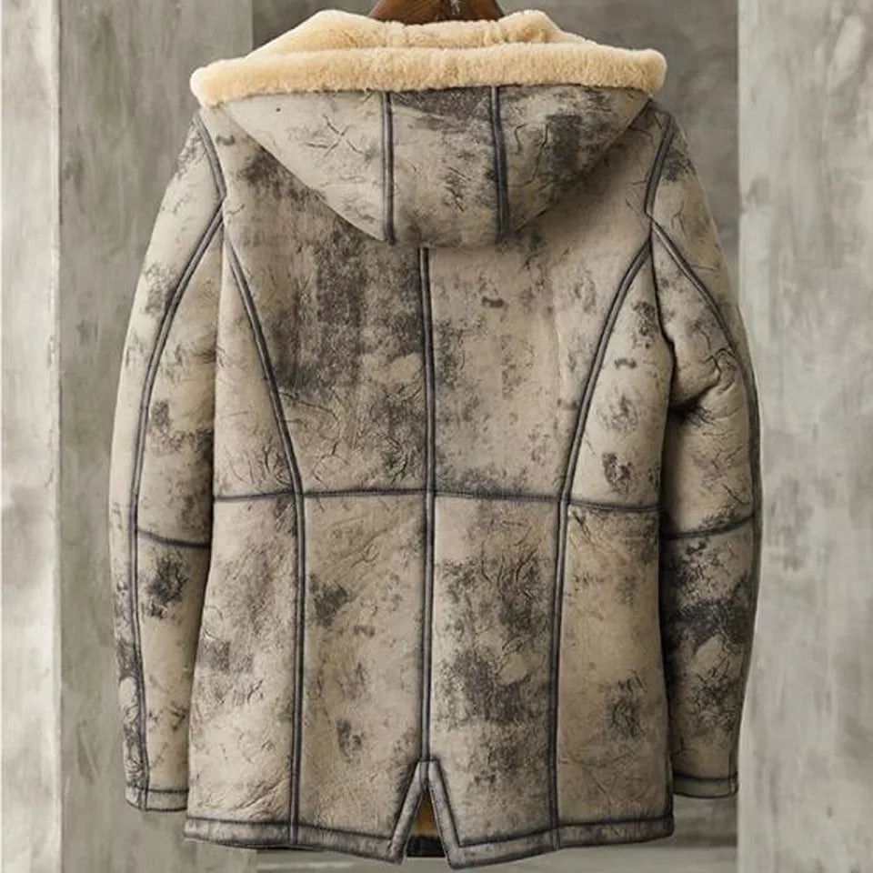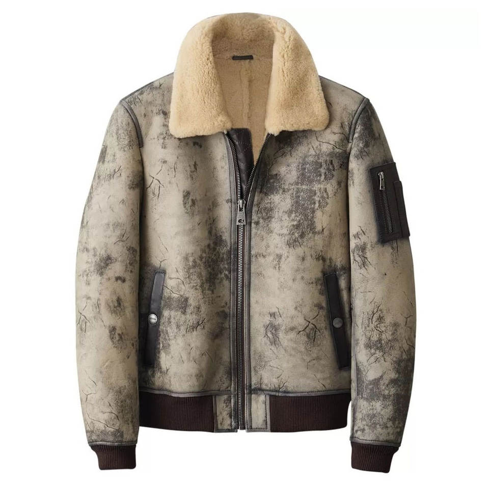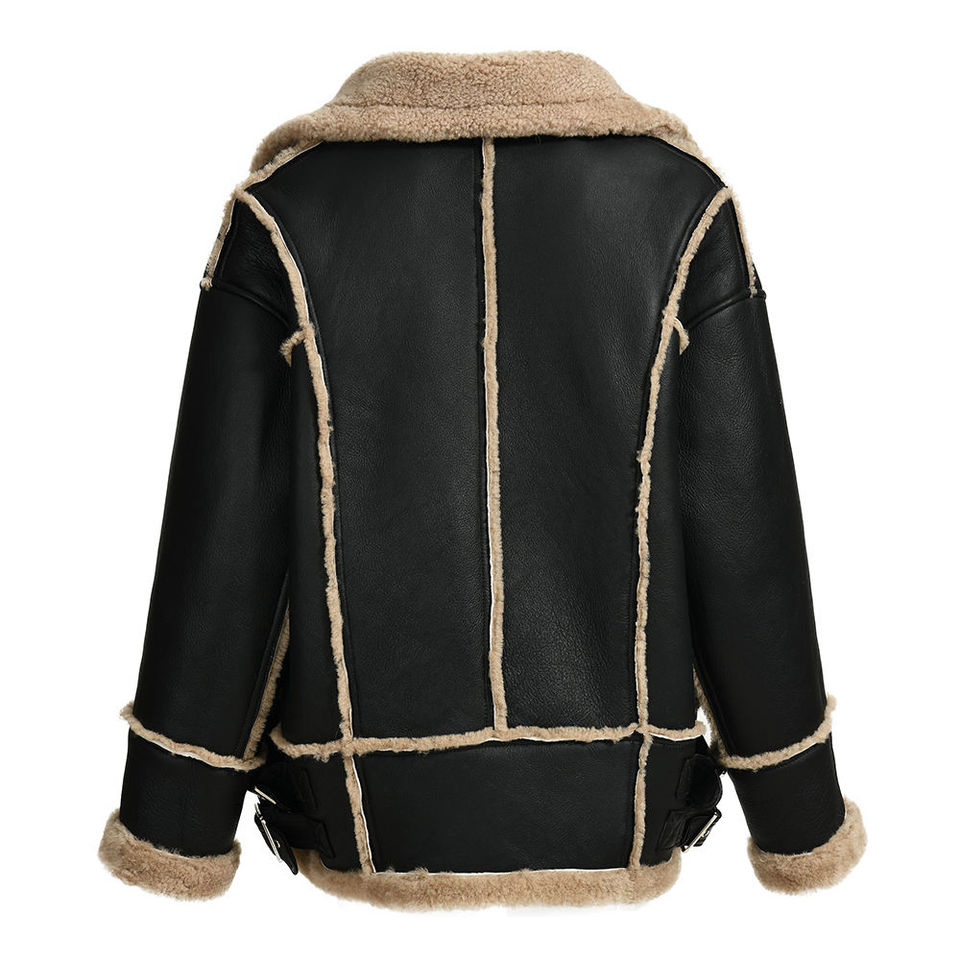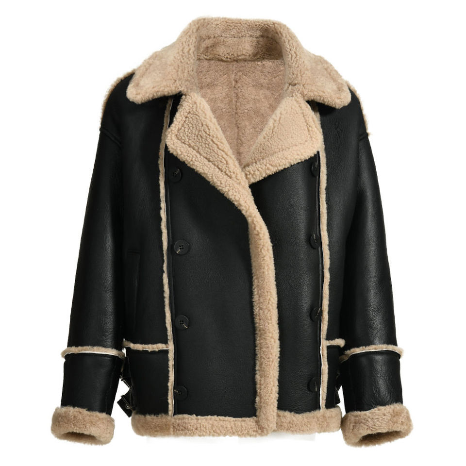 Veste d'hiver en cuir tendance Veste en cuir de mouton pur en peau de mouton Doublure en fausse fourrure Col logo personnalisé Vestes