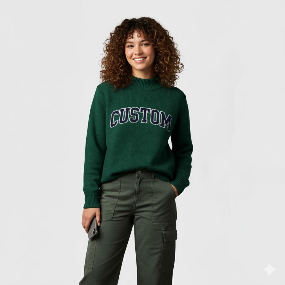 Sweat-shirt en polaire à col roulé pour femme, style universitaire hivernal, personnalisé avec broderie et impression, motif grec multiculturel, décontracté