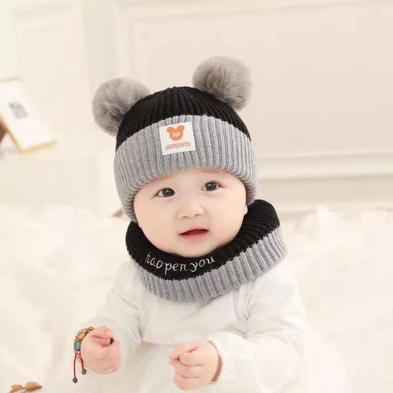 Winter Warm Double Hairball Knitted Beanie Scarves Newborn Toddler Baby Girl Boy's Cute Hat Pompom Accessory