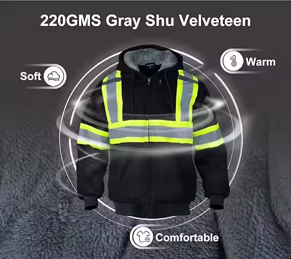 Winter Warm Fleece Custom Logo Construction Hi Vis Work Hoodie Workwear Worker Coat High Visibility Safety Reflective Jacket