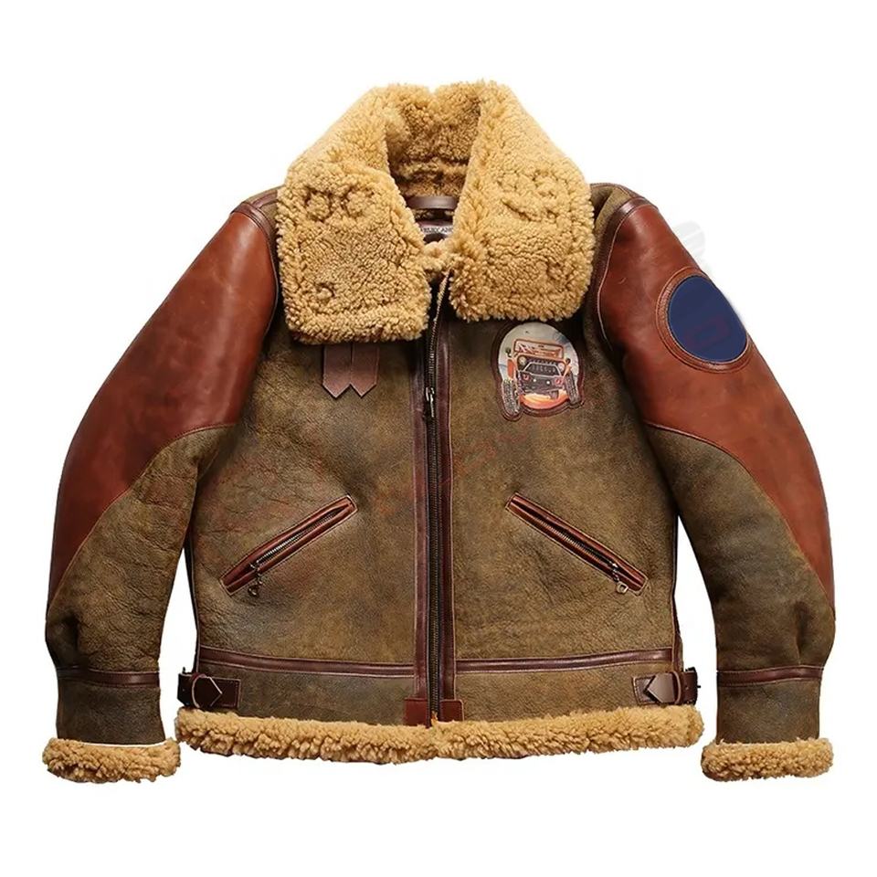 Winter Warm Men's European American Bomber Fur-Collar Fashion Casual Thickened American Sheepskin Cowhide Leather Jacket