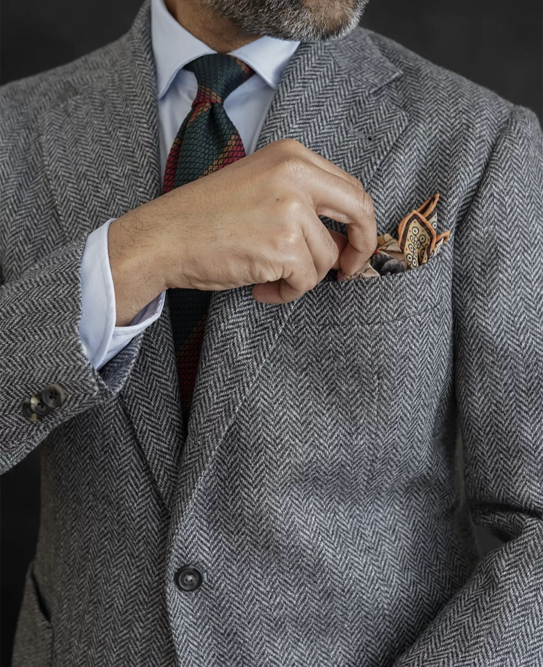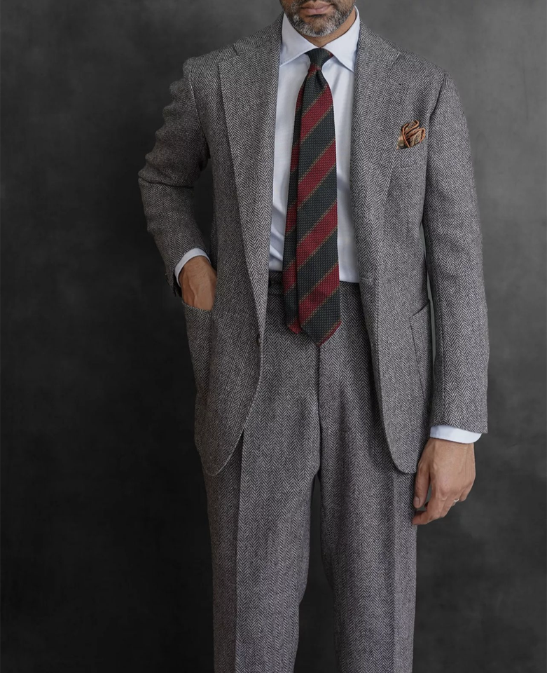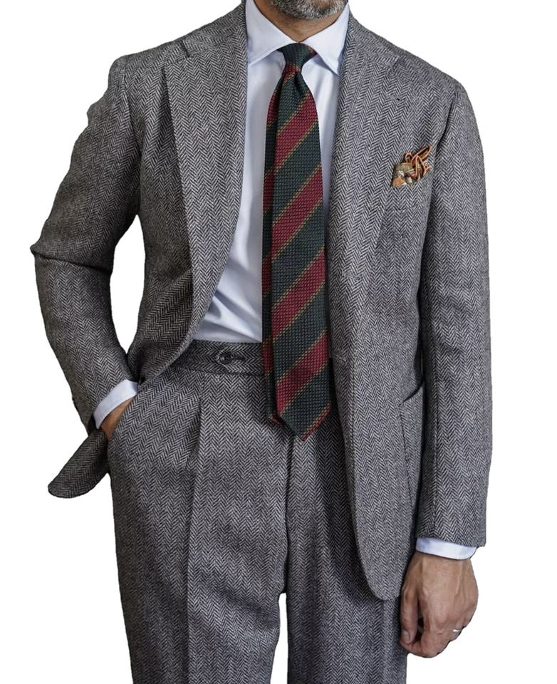Costumes d'hiver chauds pour hommes, gris, en tweed à chevrons, 2 pièces, coupe ajustée, col cranté, ensembles de blazers, vêtements de chasseurs, ensembles décontractés pour hommes