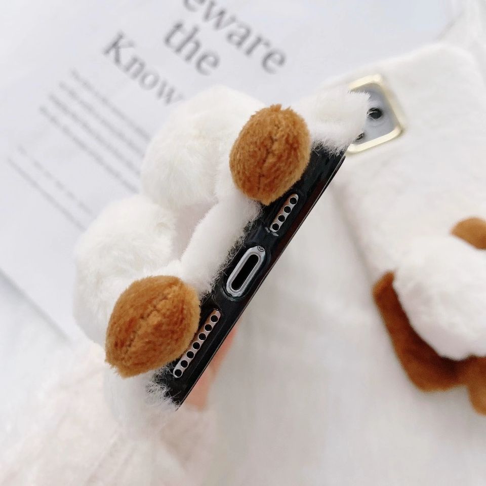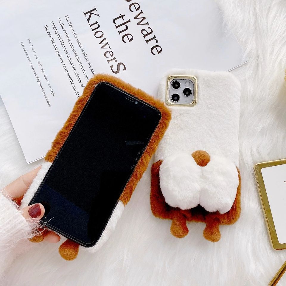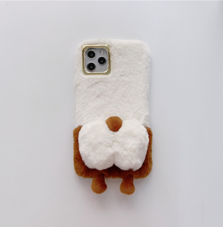 Étui de téléphone en peluche chaude d'hiver Corgi en fourrure moelleuse pour iPhone 13 Pro Max 11 12 XR XS 7 8 Plus Étui de téléphone en silicone mignon
