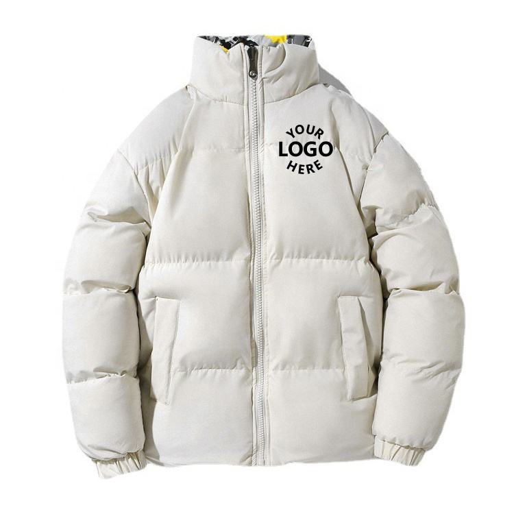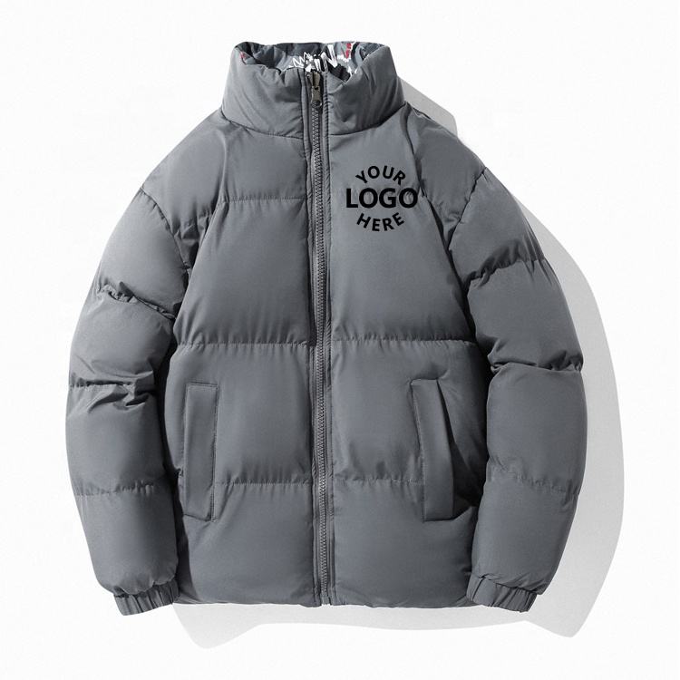 Blouson d'hiver chaud uni à col rond, personnalisable avec logo imprimé sur le devant, pour homme, style décontracté, bomber, respirant, coupe-vent