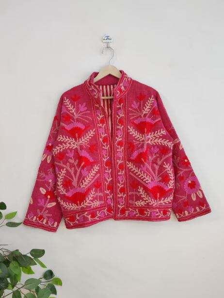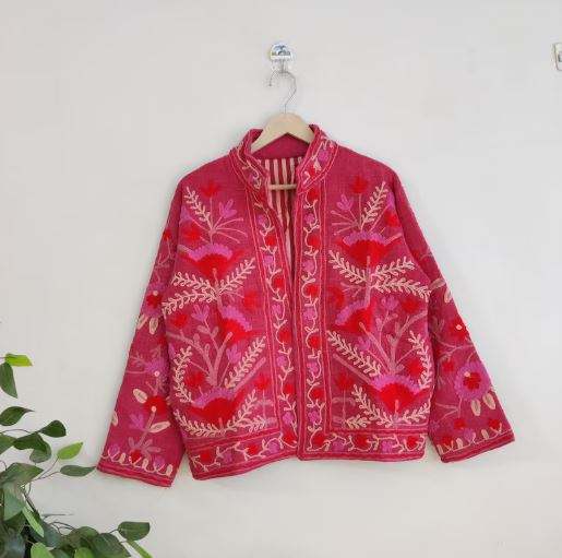 Winter Wear Suzani Embroidery Bohemian Velvet High Quality Designer Jacket New Collection Handmade Floral Design Unisex Casual