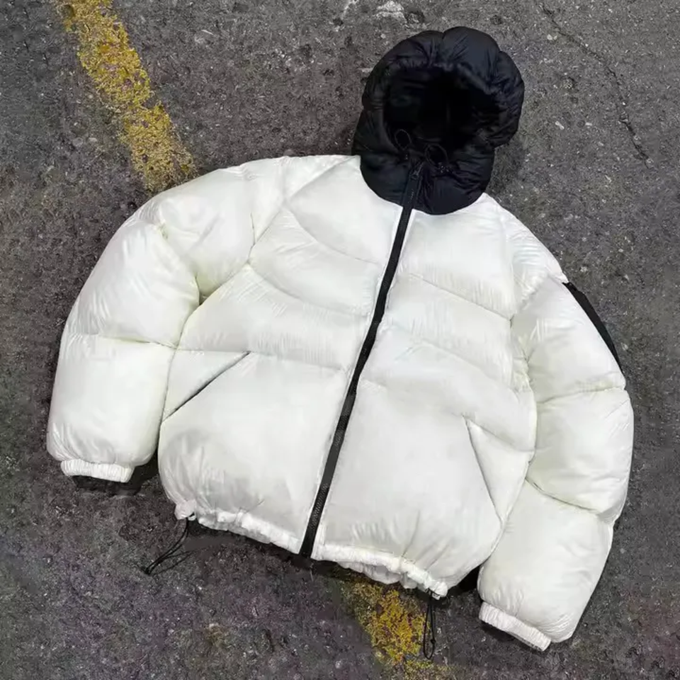 Veste matelassée décontractée en toile brillante chaude à col montant à capuche imperméable coupe-vent d'hiver Nouvelle arrivée pour hommes