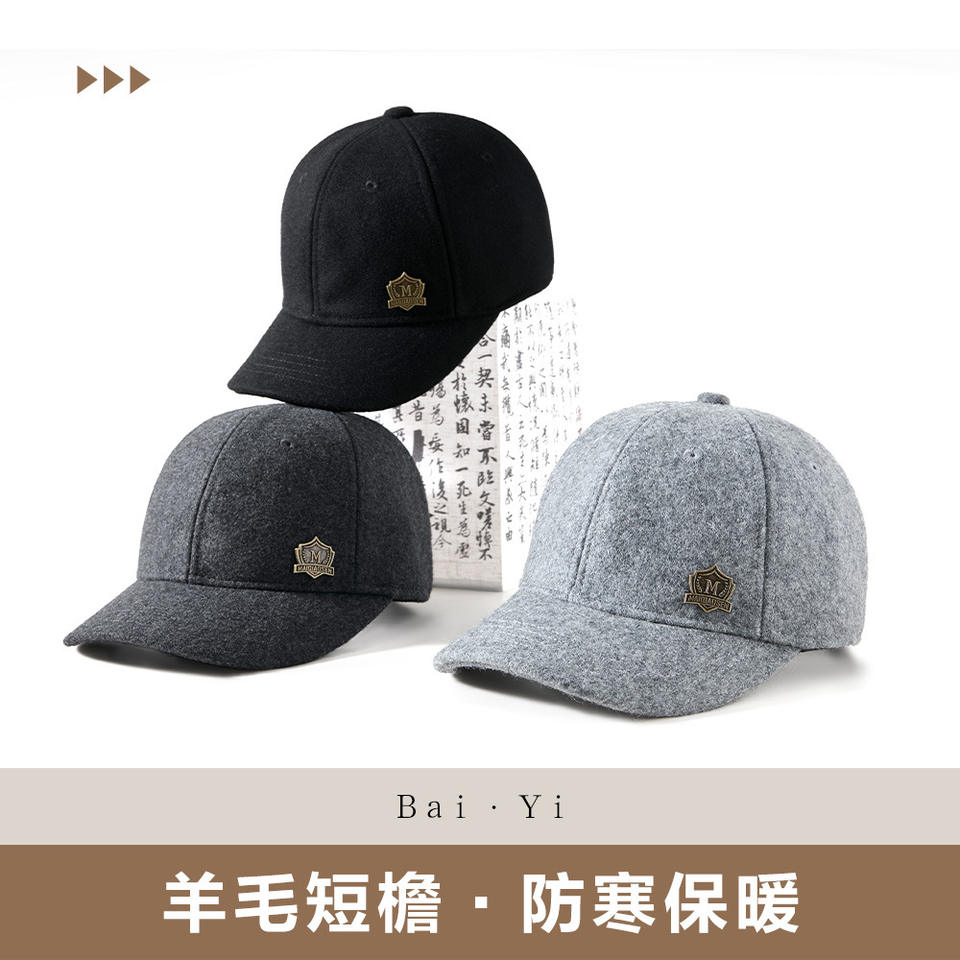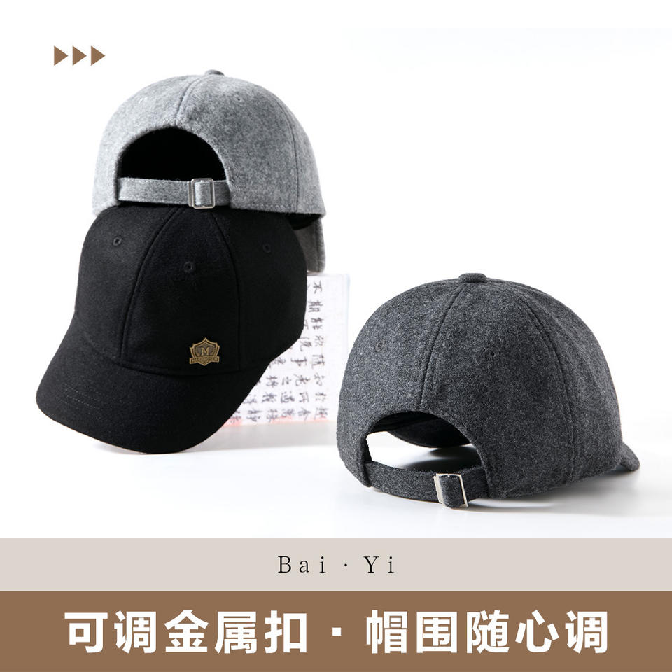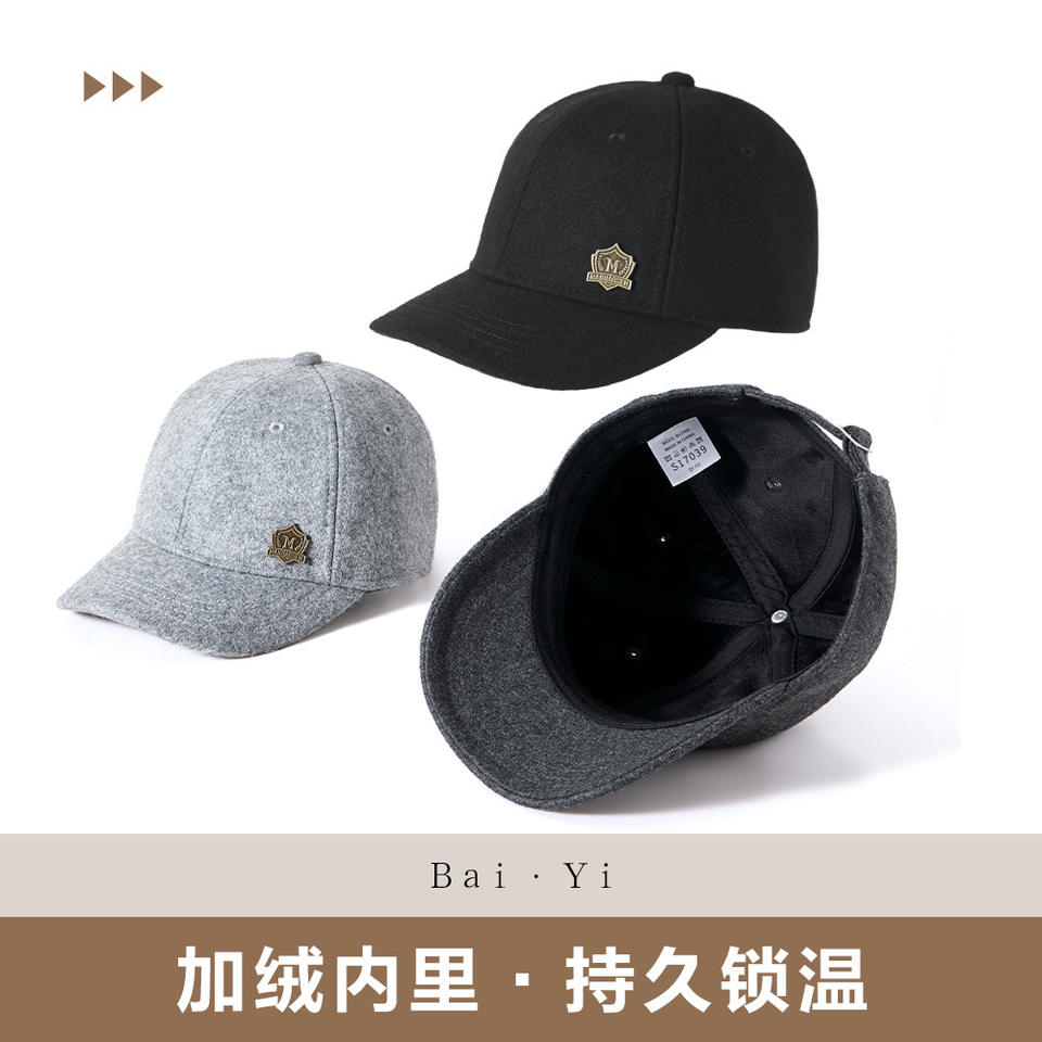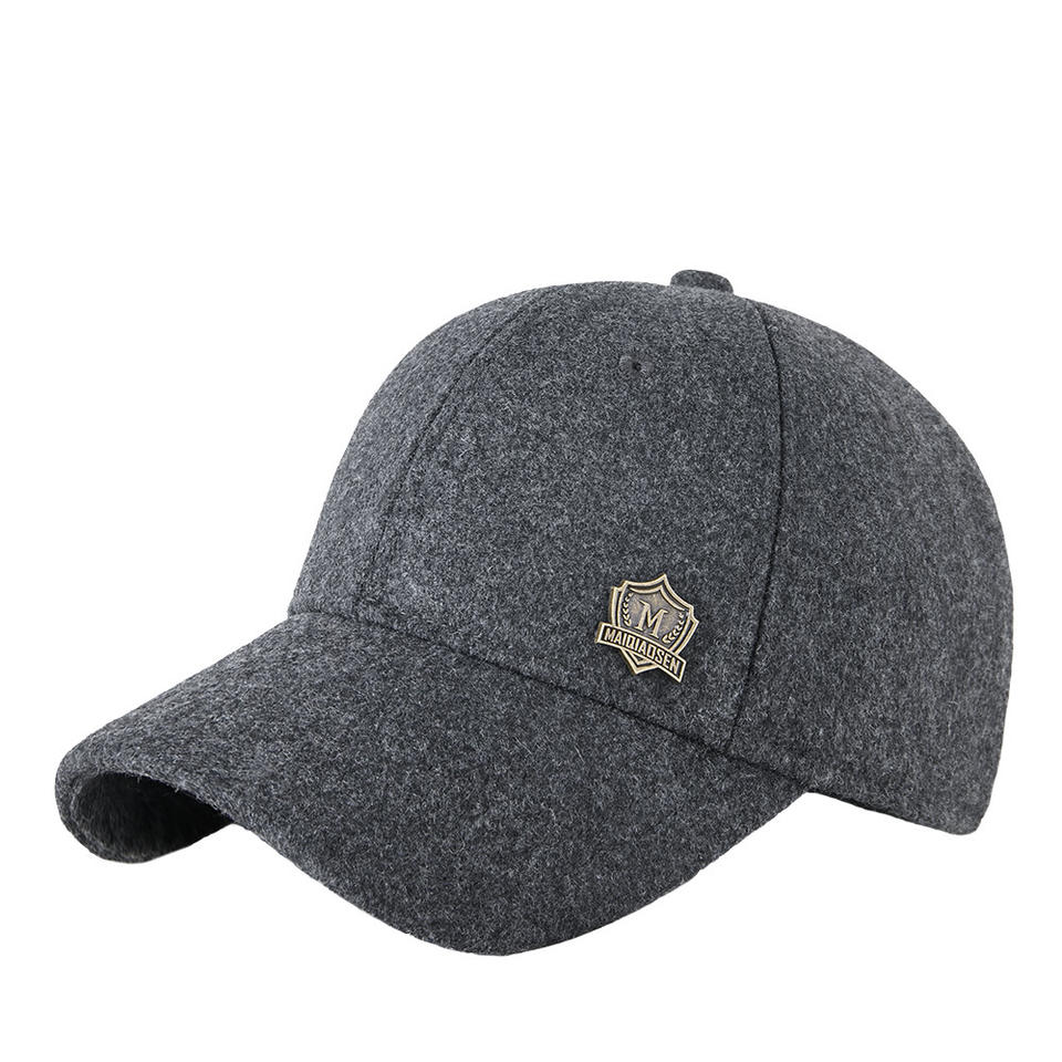 Casquette de baseball en laine d'hiver pour hommes, gris foncé, doublée de polaire, chaude, coupe-vent, protection solaire, chapeau d'hiver