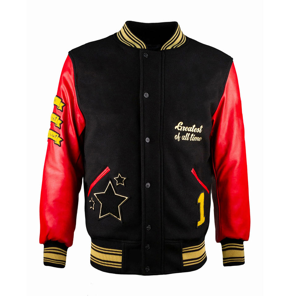 Veste d'hiver en laine pour adulte, avec logo brodé sur le devant, style universitaire, col montant, coupe-vent, à capuche, bomber, veste varsity