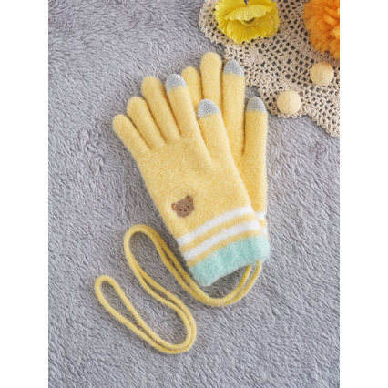 Gants d'hiver jaunes en coton pour garçons Gants à points tricotés pour enfants pour scène de bébé