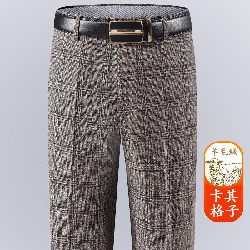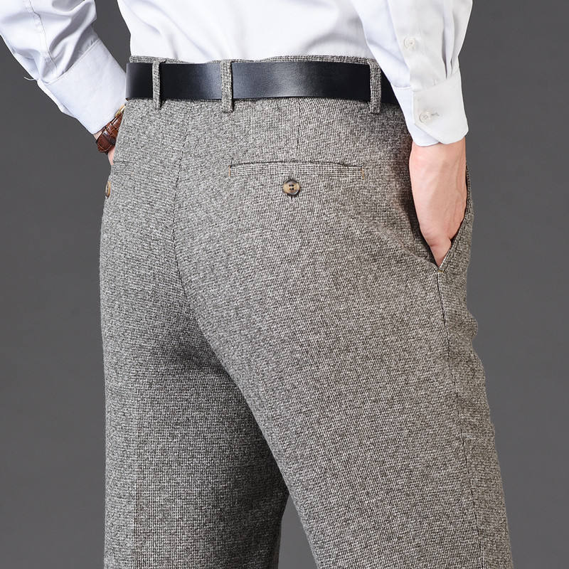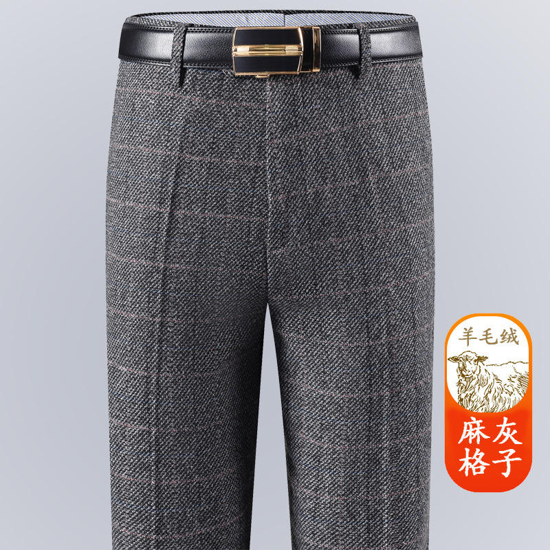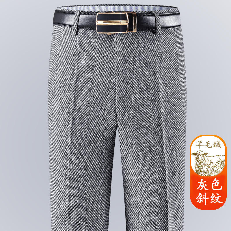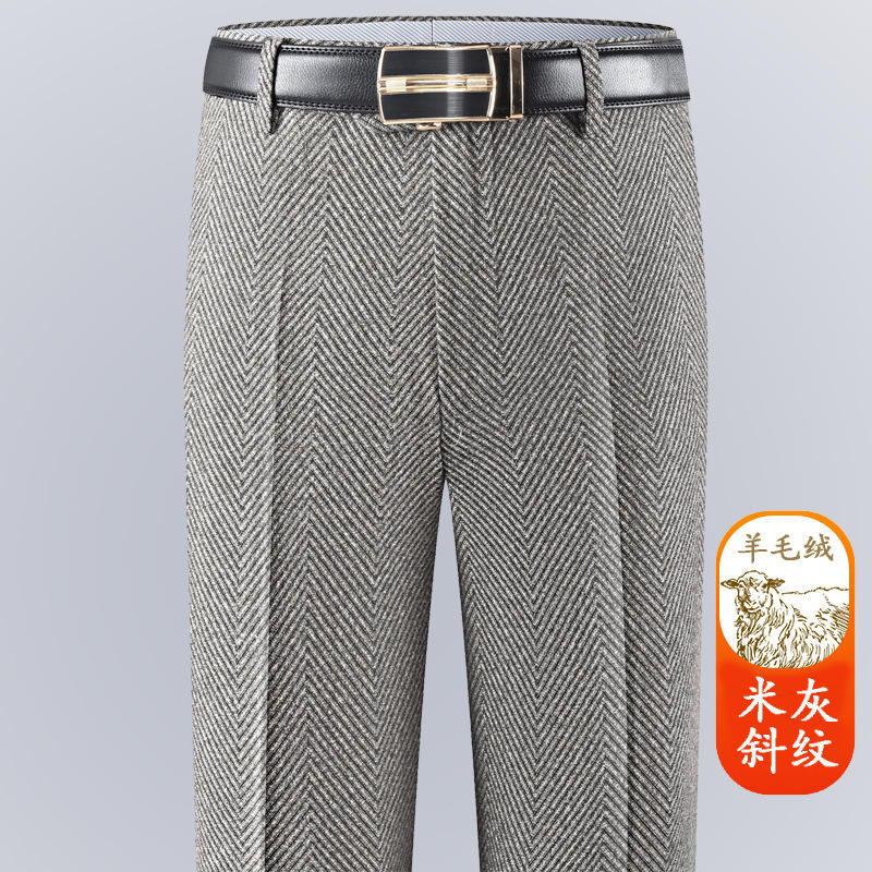Pantalon de costume en laine épais pour homme, style décontracté et professionnel, coupe droite, taille haute, ample, non extensible, pour l'hiver et l'automne