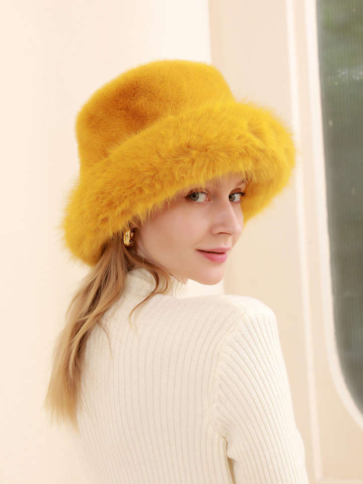 Winter fluffy faux fur fisherman plush warm hat fuzzy bucket style women outdoor ski cozy soft headwear trendy fashion accessory
