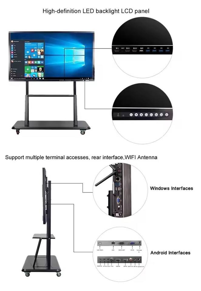 Tableau blanc interactif Wintronix, tableau intelligent fabriqué en Chine, montage mural, résolution 4K, double système d'exploitation (Android Windows), 20 points tactiles