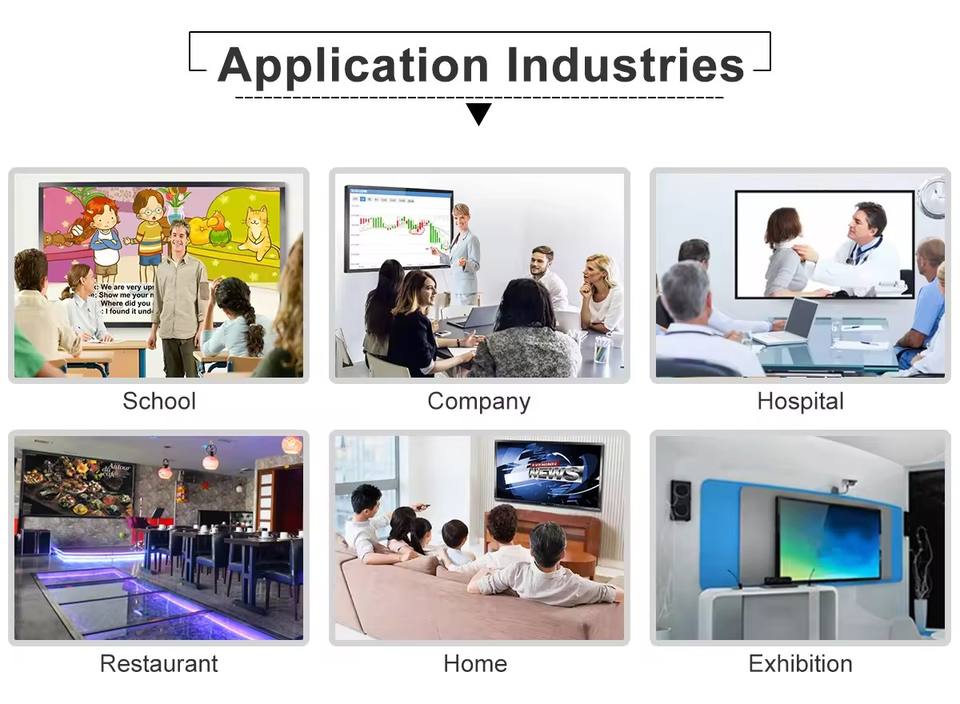 Accueil, Bureau, Éducation, Conférence, Publicité, Détail Vendeur, Traitement médical, Formation, Réunion, Enseignement de bureau ou d'école, Salle de classe et bureau, Fournitures d'hôtel restaurant, Commande de surveillance centre, Libre-service affairesApplication