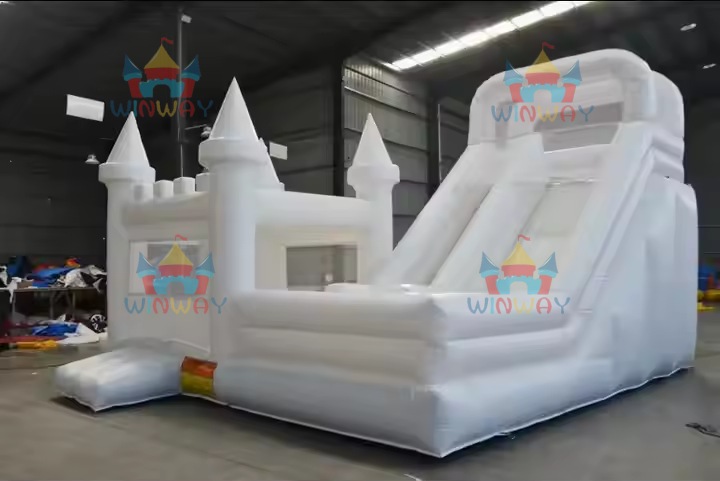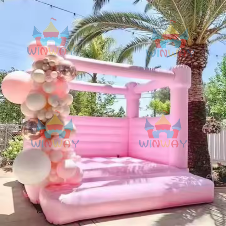 Château gonflable de mariage de qualité commerciale Winway, couleur pastel clair, blanc, 4x4x4m, PVC, capacité 500 kg, 5-8 enfants