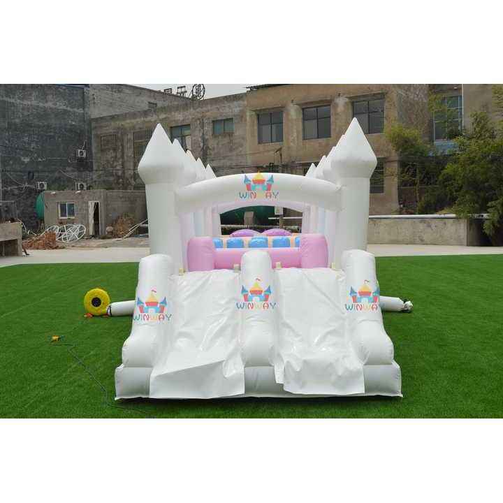 Château gonflable à double PVC Winway, couleurs pastel, avec parcours d'obstacles et toboggan, usage commercial, capacité de 1000 kg