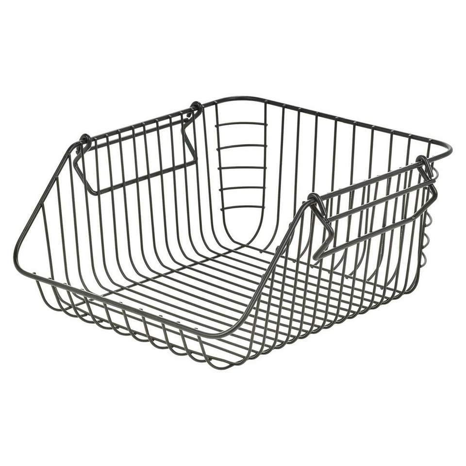 Panier en fil métallique pour rangement de placard avec structure métallique durable et poignées de transport faciles