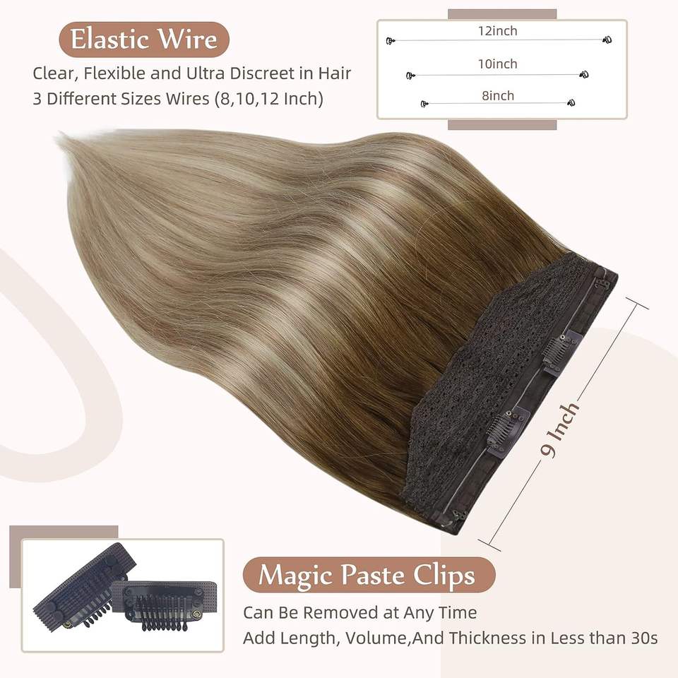 Extensions de cheveux en fil, cheveux humains, extensions invisibles à clipser, 12 pouces, bandeau secret, extensions à fil