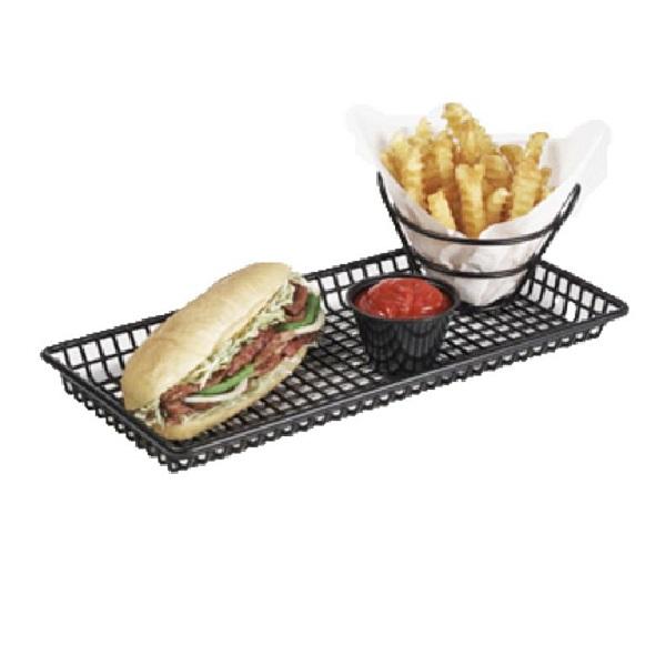 Plateau en treillis métallique pour restaurant, hôtel, ferme Plateau en fer noir 14 "x 7" x 1 "Forme rectangulaire Fast Foods Servant