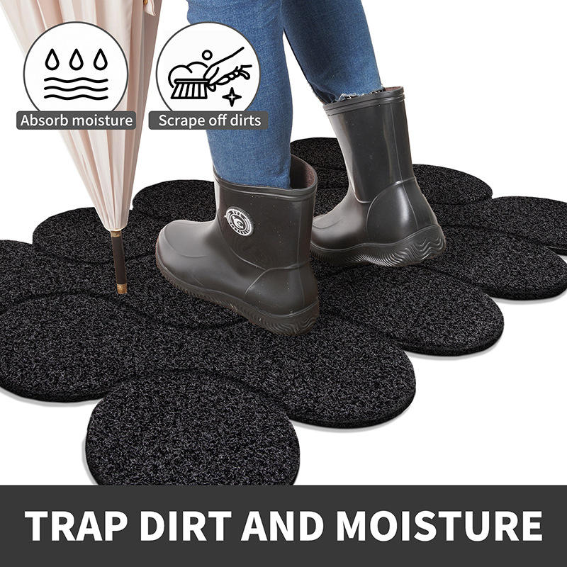 Tapis d'entrée rectangulaire gris foncé en PVC, antidérapant, résistant aux taches, couleur unie, pour hall d'entrée et salon