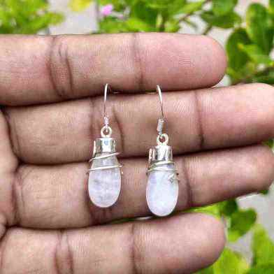 Boucles d'oreilles en pierre à facettes en argent Sterling 925 fil enroulé arc-en-ciel pierre de lune Briolette léger Designer Cap Drop pour cadeau
