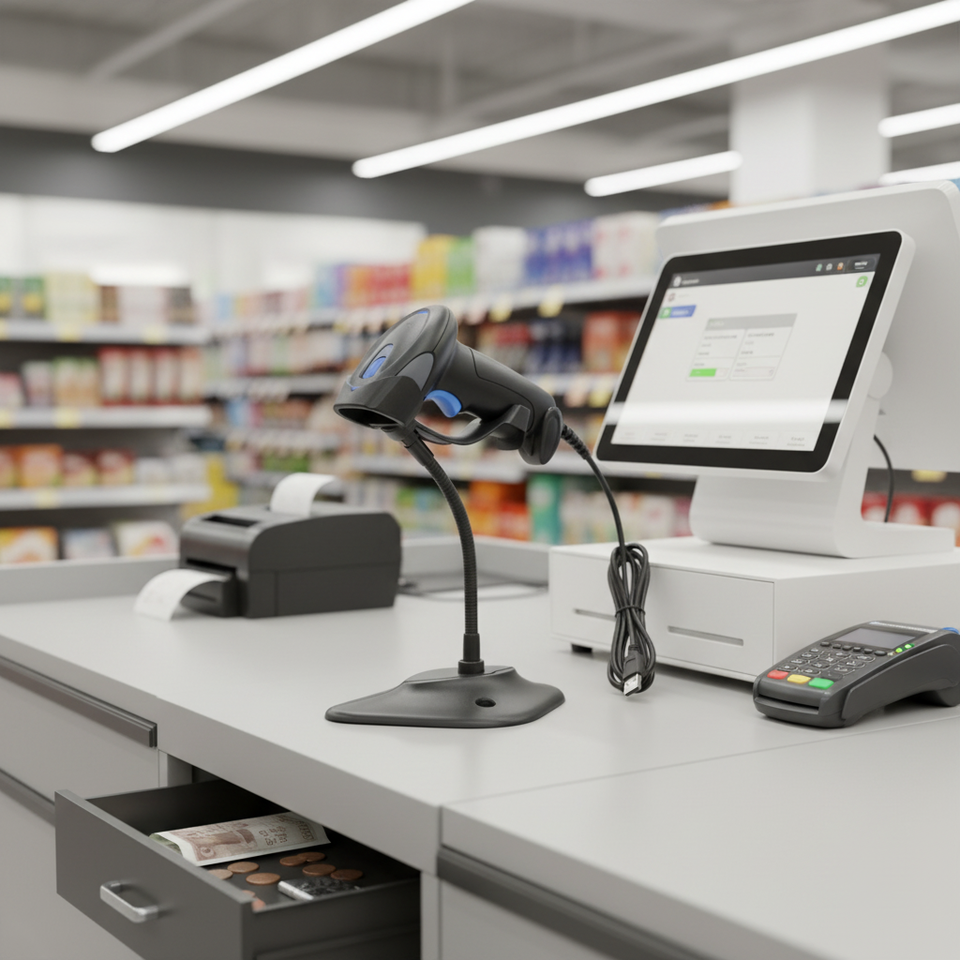 Lecteur de codes-barres et QR filaire compatible avec les caisses enregistreuses de supermarchés, laser 1D 2D pour inventaire