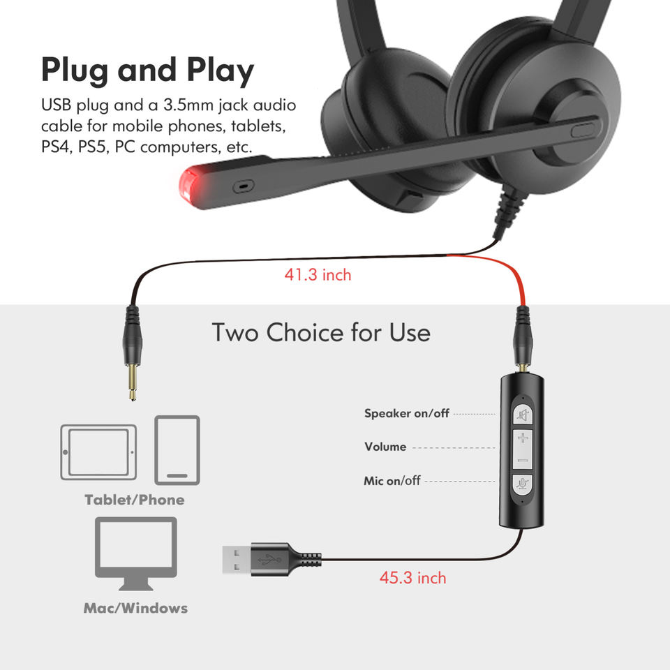 Casque filaire pour centre d'appels avec microphone antibruit pour le bureau et la téléphonie