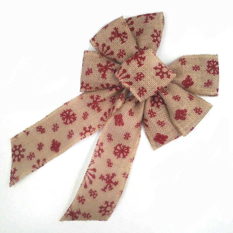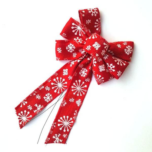 Noeud de ruban de jute pré-attaché de flocon de neige rouge de NoëlDesc.