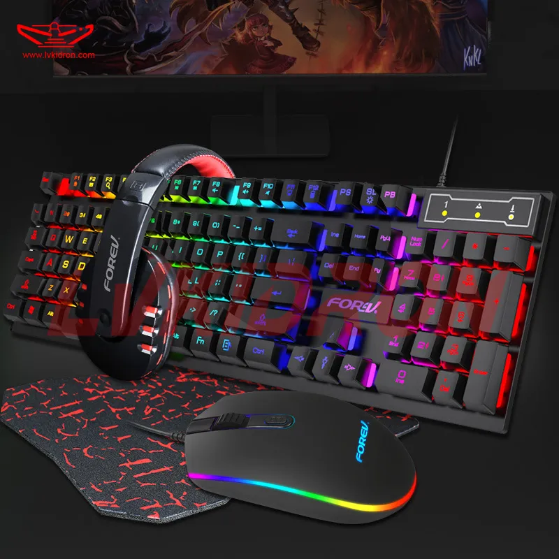 Clavier filaire 4 en 1 Combo Pack RGB USB Clavier filaire à une main Souris de jeu Clavier Souris Combo Set