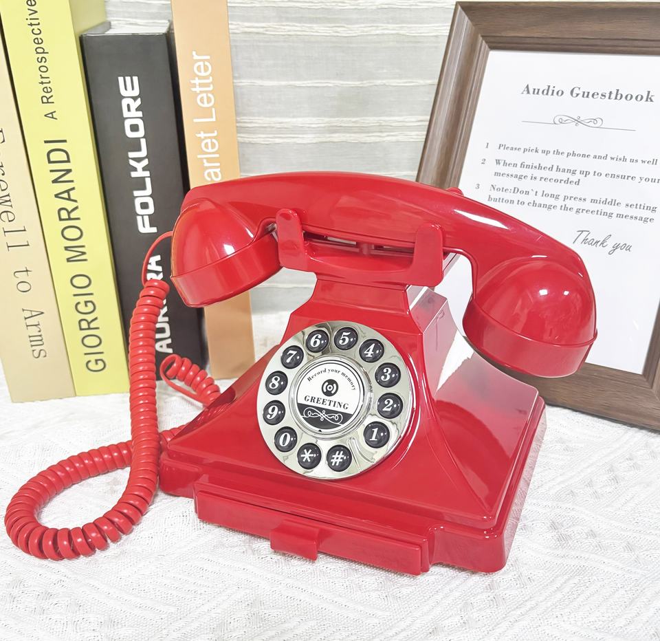 Filaire Simple Mariage Rouge Spin Compact Simple Premium Téléphone Audio Livre d'or Messages de mariage Vintage Audio livre d'or