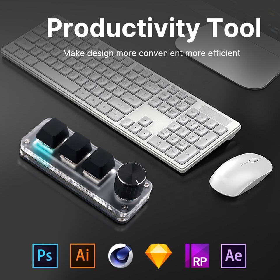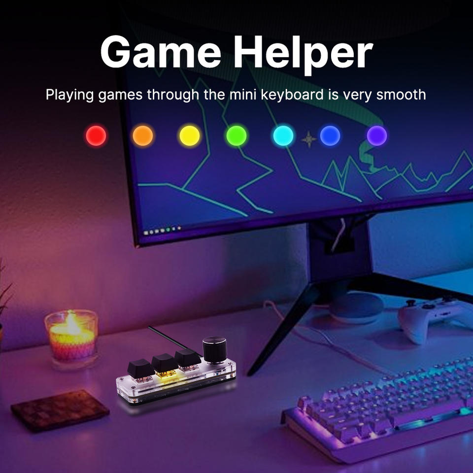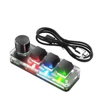 Clavier mécanique macro USB filaire 3 touches + 1 bouton RGB Type-c vers USB Commutateur de programmation personnalisé pour les joueurs/éditeur vidéo