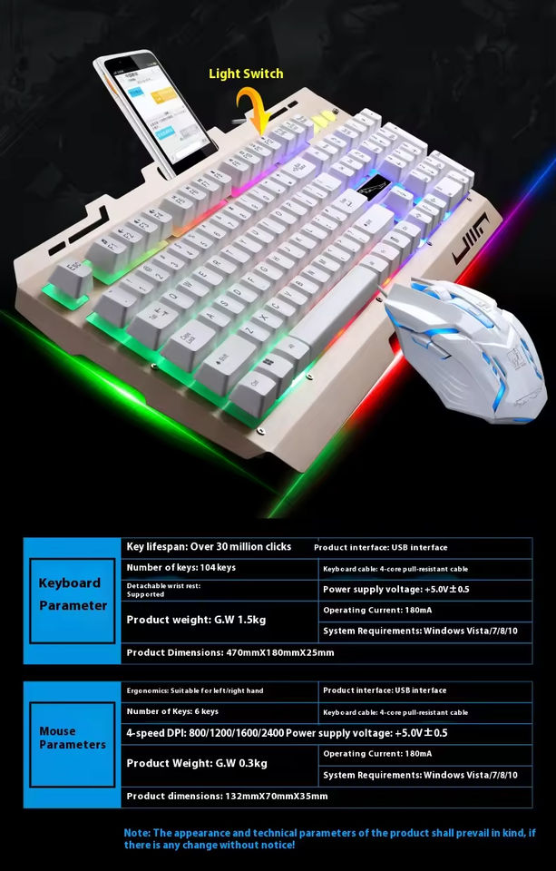 Ensemble clavier et souris de jeu USB filaire en métal pour cybercafé avec support pour ordinateur portable, ensemble clavier et souris ergonomique