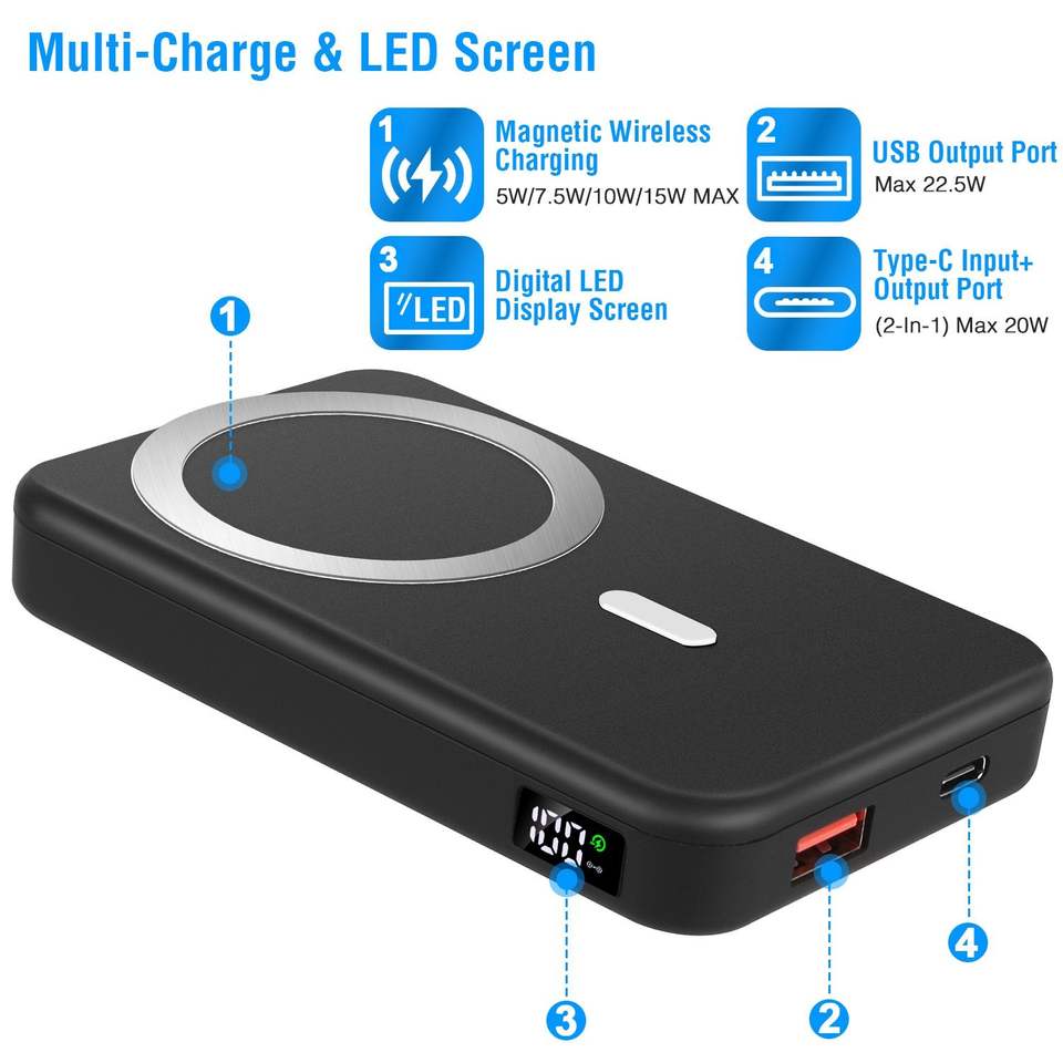 Chargeur portable magnétique sans fil 10000mAh, charge rapide 22.5W, compatible avec iPhone 12 13 Pro Mini Pro Max