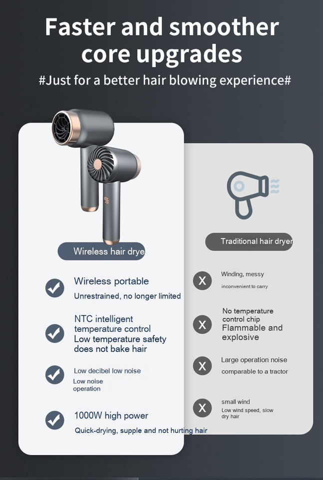 Product name:Wireless Hair Dryer High-Speed Portable Hair Dryer for Home Use