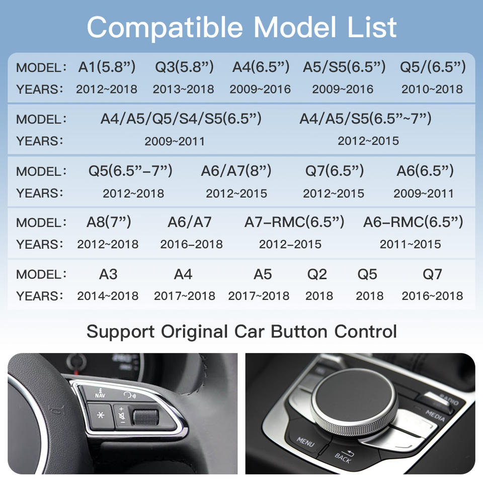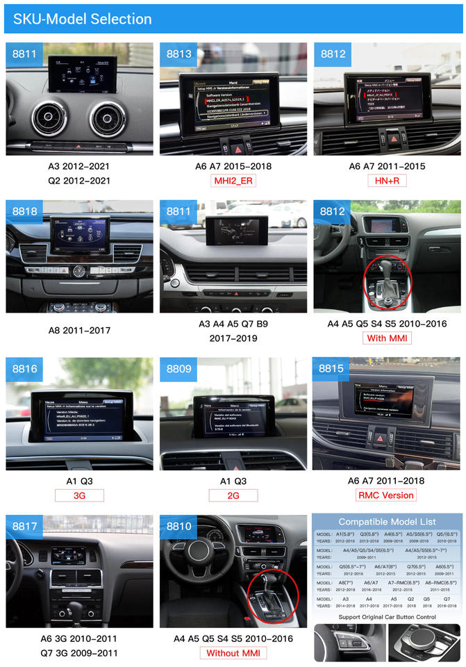 Kits sans fil Apple CarPlay Android Auto pour Audi Lecteur vidéo Android pour voiture A1 A3 A5 A6 A8 Q2 Q3 Q5 Q7 S4 S5 MMI MIB RMC