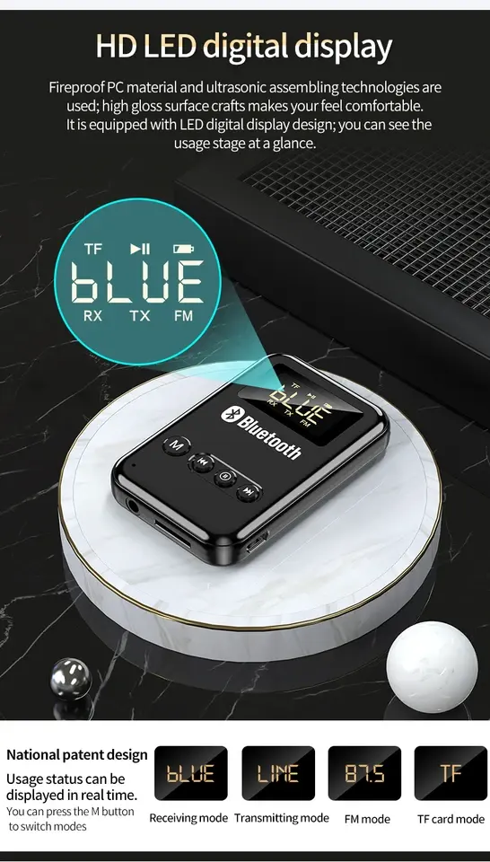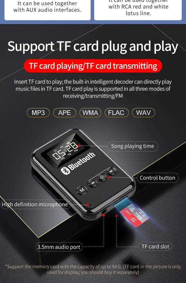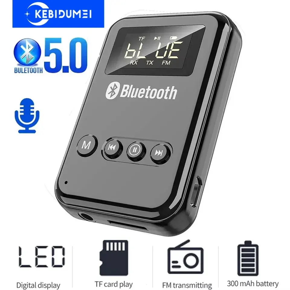 Adaptateur audio sans fil 5.0, émetteur-récepteur, prise jack 3,5 mm, AUX, FM, voiture, mains libres, appel, micro pour PC, TV, casque, haut-parleur, en plastique