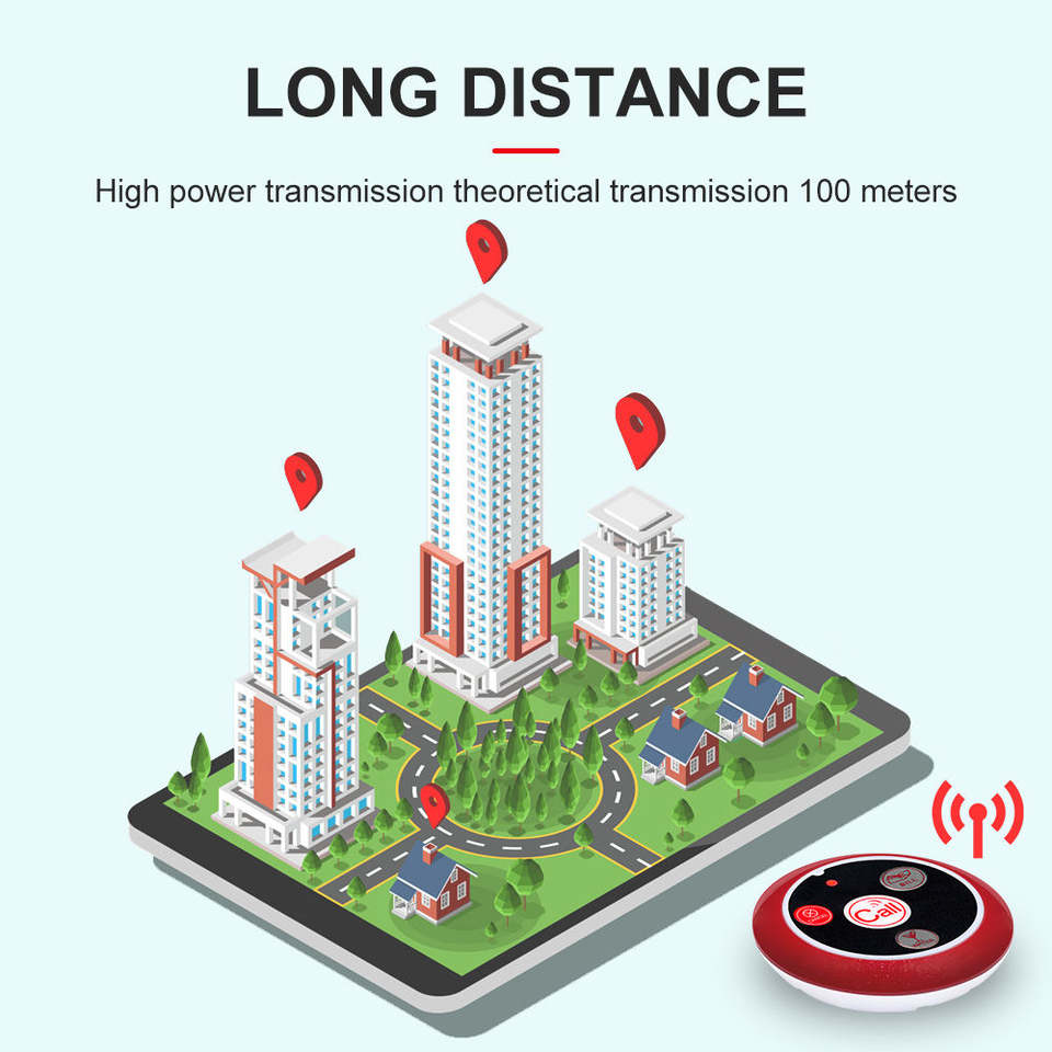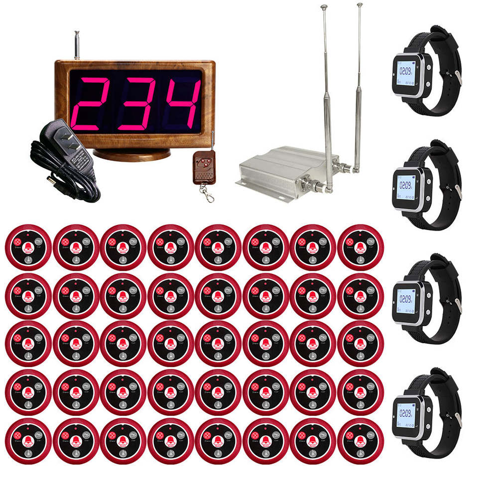 Système d'appel sans fil - 40 émetteurs de boutons d'appel + 4 montres de serveur + 1 récepteur d'affichage | Restaurant/hôtel